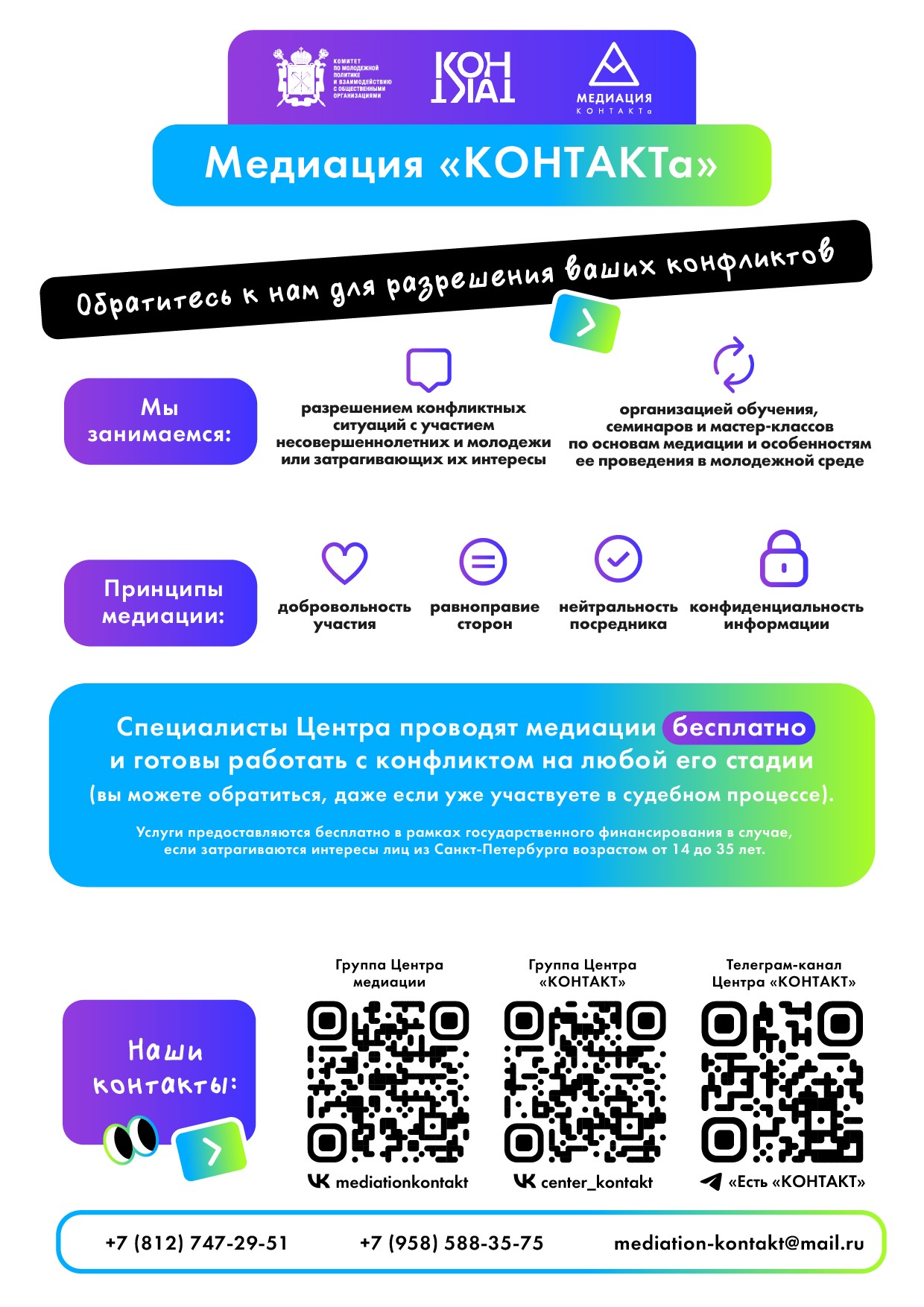 Школьная служба медиации создана для урегулирования споров и предотвращения конфликтов между участниками образовательных отношений при содействии медиатора (независимого лица либо независимых лиц, привлекаемых сторонами в качестве посредников в урегулировании спора для содействия в выработке сторонами решения по существу спора) на основе добровольного согласия сторон.